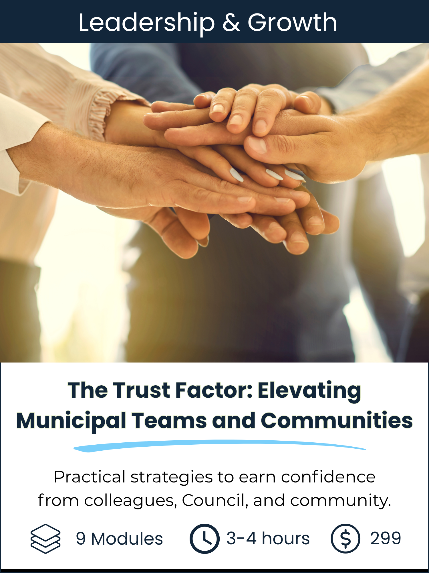 Online Courses for Municipal Professionals Practical, real-world training designed for municipal staff and leaders at every level. Unlock All Access Now! Unlock your FULL POTENTIAL within Municipal Government with our 12 available courses! Learn More Learn More Learn More Learn More Learn More Learn More Learn More Learn More Learn More Learn More Learn More Learn More Course Pricing Enroll in Individual Courses Unlock All Access Inquire about a Municipal License